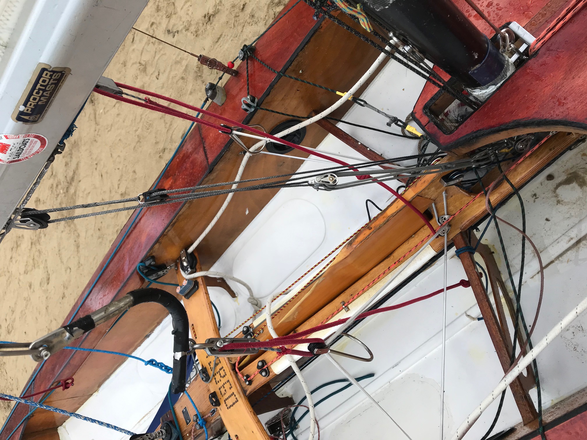 Cependant gréer le bateau est une autre paire de manche, je pense que je ne m'en suis pas trop mal tiré. Mais après quelques sorties certaines choses que j'ai fait me semble pas très au point :